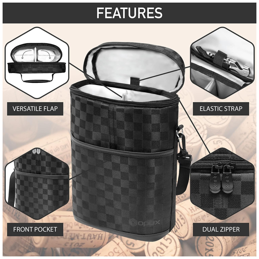 Bolsa Térmica Para Transporte de Vinhos até 2 Garrafas OPUX Preto