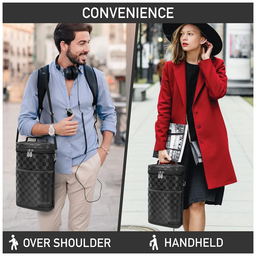 DESIGN CONVENIENTE E INTELIGENTE Apresenta uma alça de ombro ajustável e removível junto com alças de mão acolchoadas para diferentes estilos de transporte. A aba versátil interior garante que suas garrafas de vinho cabem independentemente do tamanho e oferece proteção divisória acolchoada.