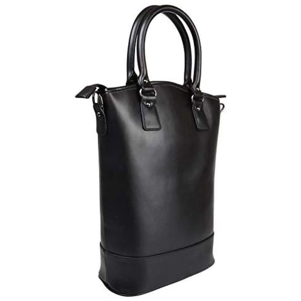 Opções de transporte versáteis. Duas alças de couro permitem que a bolsa seja transportada e uma alça ajustável e removível é fornecida para uso no ombro ou no corpo.