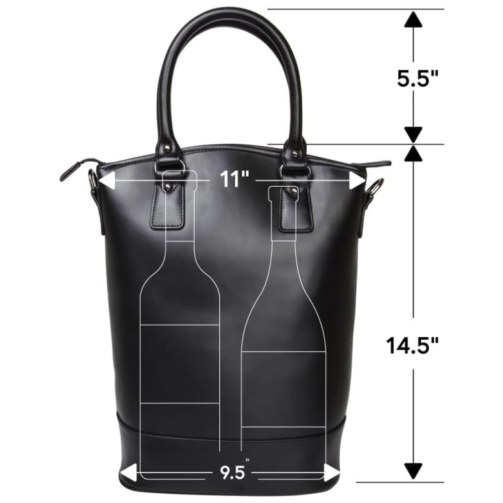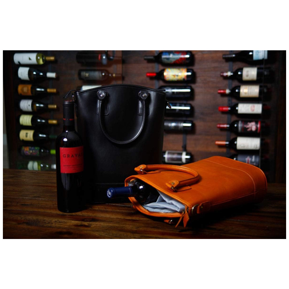 Uma sacola de vinho de couro com isolamento de luxo carrega 2 de suas garrafas de vinho favoritas. Perfeito para degustação de vinhos, piqueniques, despedidas de solteira, Traga sua própria bebida e presentes. Bolso frontal de zenamento para transportar um abridor de vinho ou acessórios.