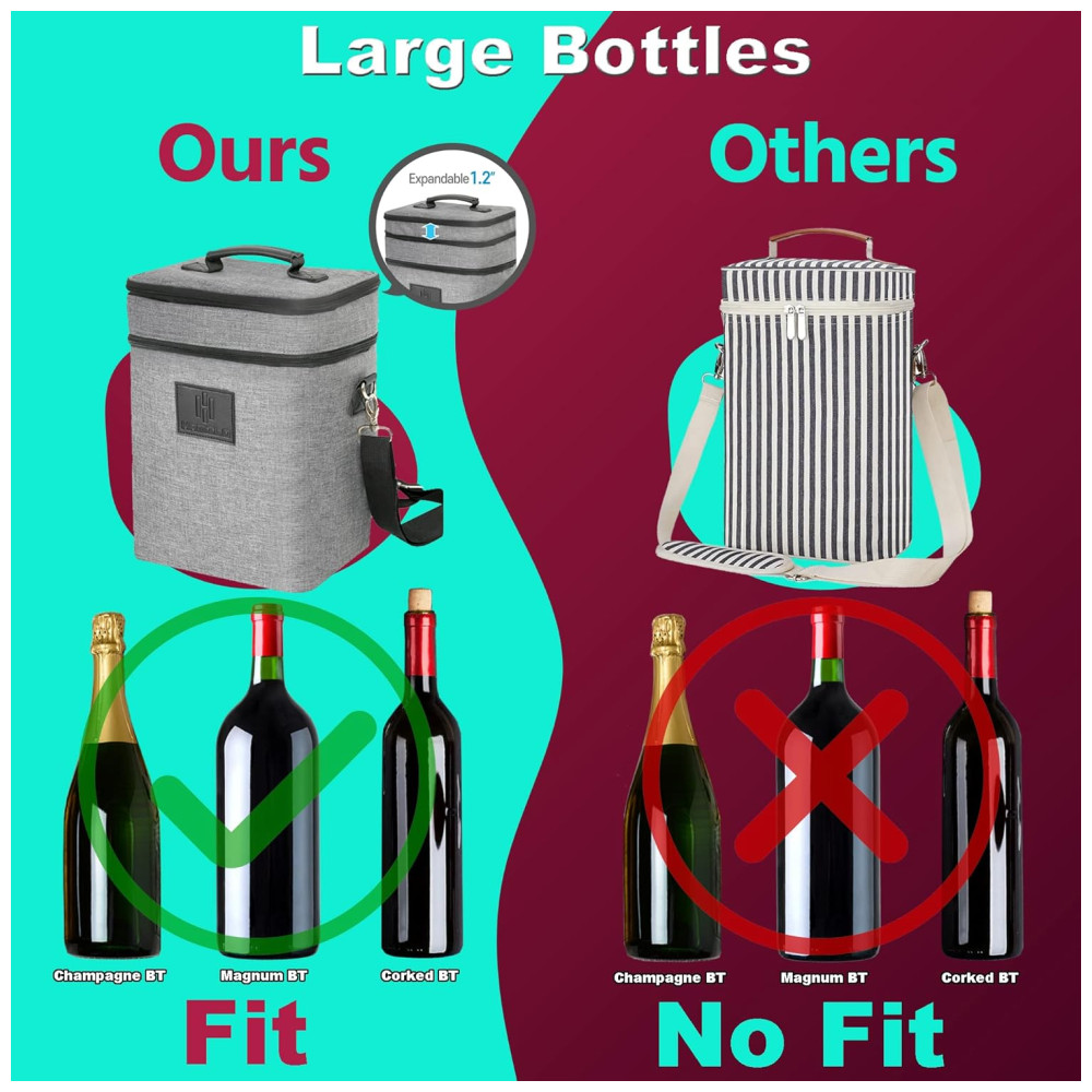 Design espaçoso e inteligente bolsa de viagem portátil para vinho que você carregue até 4 garrafas de vinho, qualquer garrafa de água, vinho, cerveja e outra bebida que você tenha em mente. A espuma EPE de a empresas e s únicos e separados, s para viagens