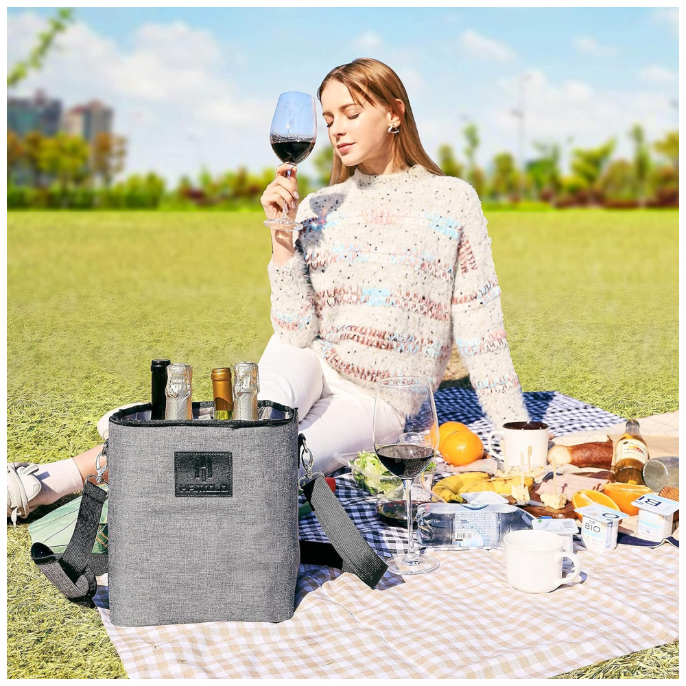 Para mais do que apenas vinho Com 4 divisões não grandes e separadas, você precisa se limitar apenas ao vinho Esta sacola isolada para lanches, permite que você carregue os itens diários, lanches, frutas, revistas, acessórios diários, etc.