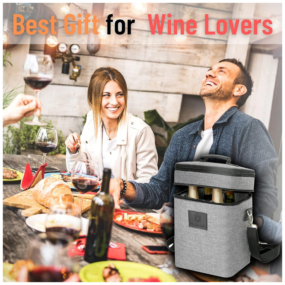 Bolsa Térmica Para Transporte de Vinhos até 4 Garrafas HAMILO Cinza