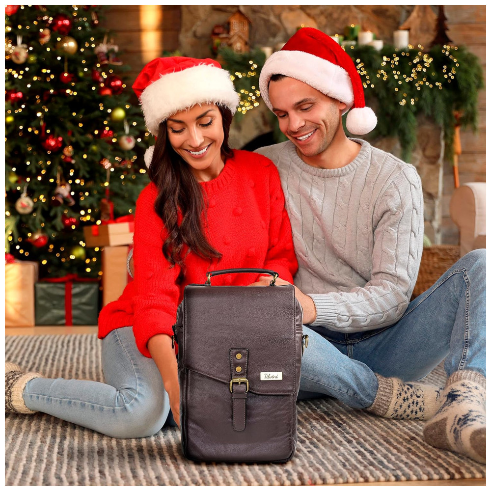 PRESENTE DE VINHO ÚNICO PARA OS AMANTES DE VINHO. Você está procurando um conjunto de piquenique para 2 pessoas, uma bolsa de garrafa byob, uma bolsa de praia estilosa, um presente de barco, um presente de noivado, um acessório de viagem de vinho ou apenas o melhor presente de vinho para os amantes do vinho O porta garrafas de couro Tilvini é tão versátil e presentável, um presente verdadeiramente e único para mulheres e homens. Elegante, funcional e luxuoso, o melhor presente de aniversário, presente de Natal ou presente de aniversário para homens que têm tudo