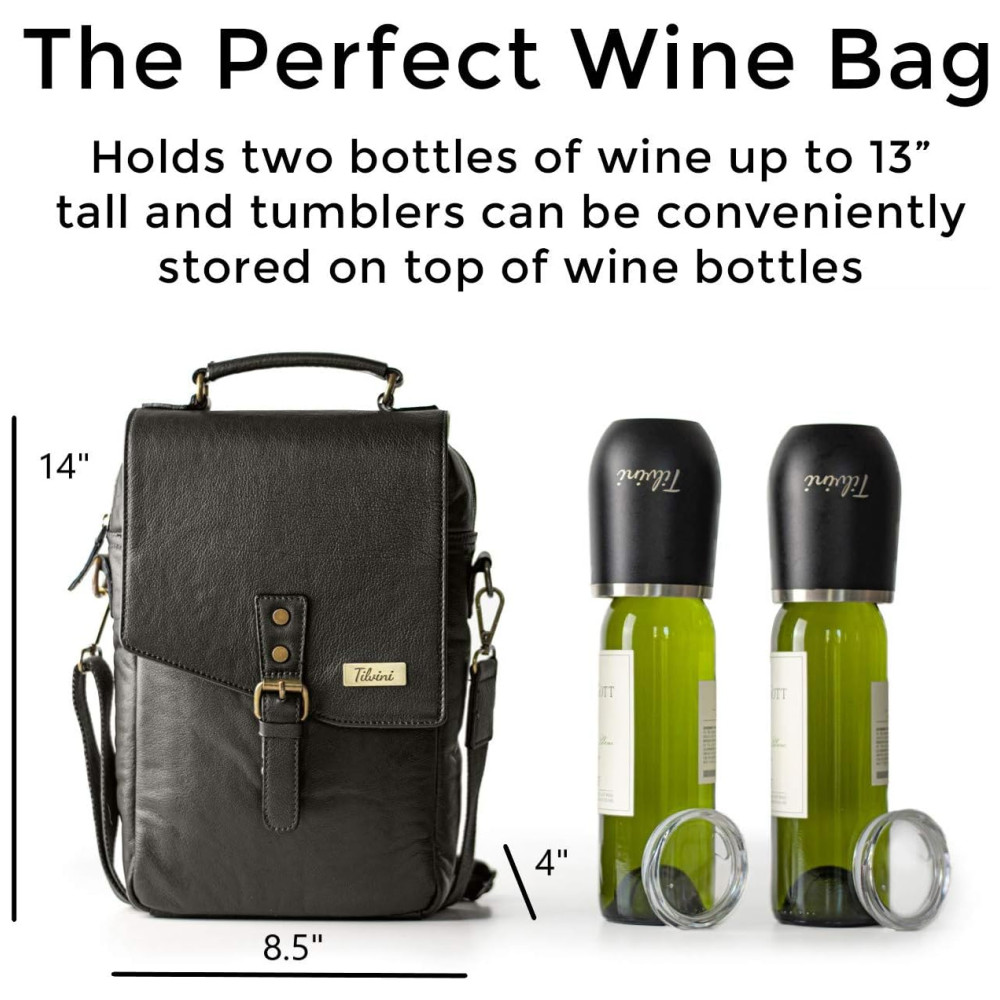 OS MELHORES PRESENTES DE VINHO PARA OS AMANTES DE VINHO. Precisa de uma sacola de vinho para a casa de praia, não procure mais. Esta bolsa de couro para vinho tem funcionalidade, versatilidade e o melhor de tudo, ESTILO para capturar o coração de qualquer amante de vinho. As bolsas porta garrafas de couro Tilvini são acessórios luxuosos para vinhos, ideais como um presente de noivado para casais, itens de registro de casamento, presentes de casamento, presentes para mães que têm tudo, presentes para o pai, presentes para amigos ou até mesmo como um presente para você, você merece