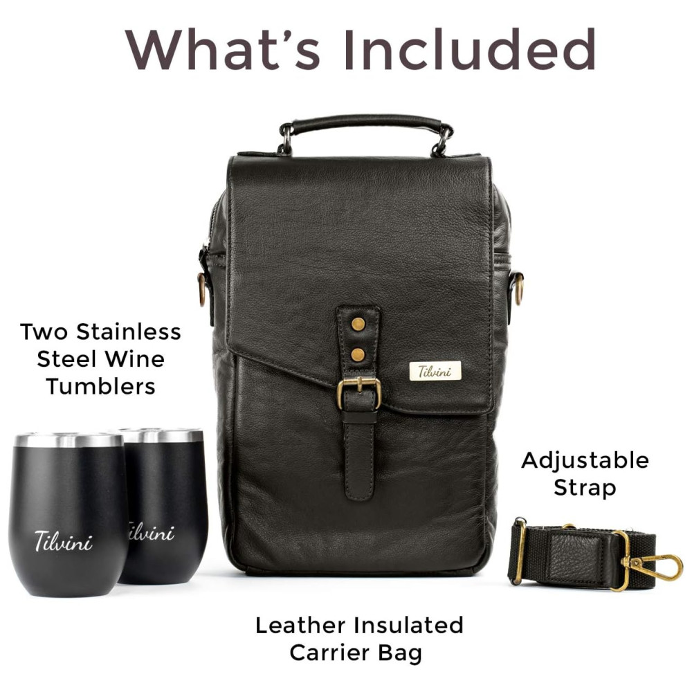 Não só é totalmente isolada, mas também é uma peça de moda elegante e luxuosa. Lutando para encontrar presentes de aniversário exclusivos para homens que têm tudo O porta garrafas de vinho Tilvini é para você. Esses refrigeradores de vinho de couro são perfeitos para qualquer entusiasta de vinho usar como um conjunto de sacola de piquenique, bolsa de viagem de vinho, bolsa de praia, bolsa térmica de vinho ou bolsa de garrafa byo. Um conjunto de vinho de luxo que é o presente de vinho perfeito e exclusivo para homens ou mulheres.