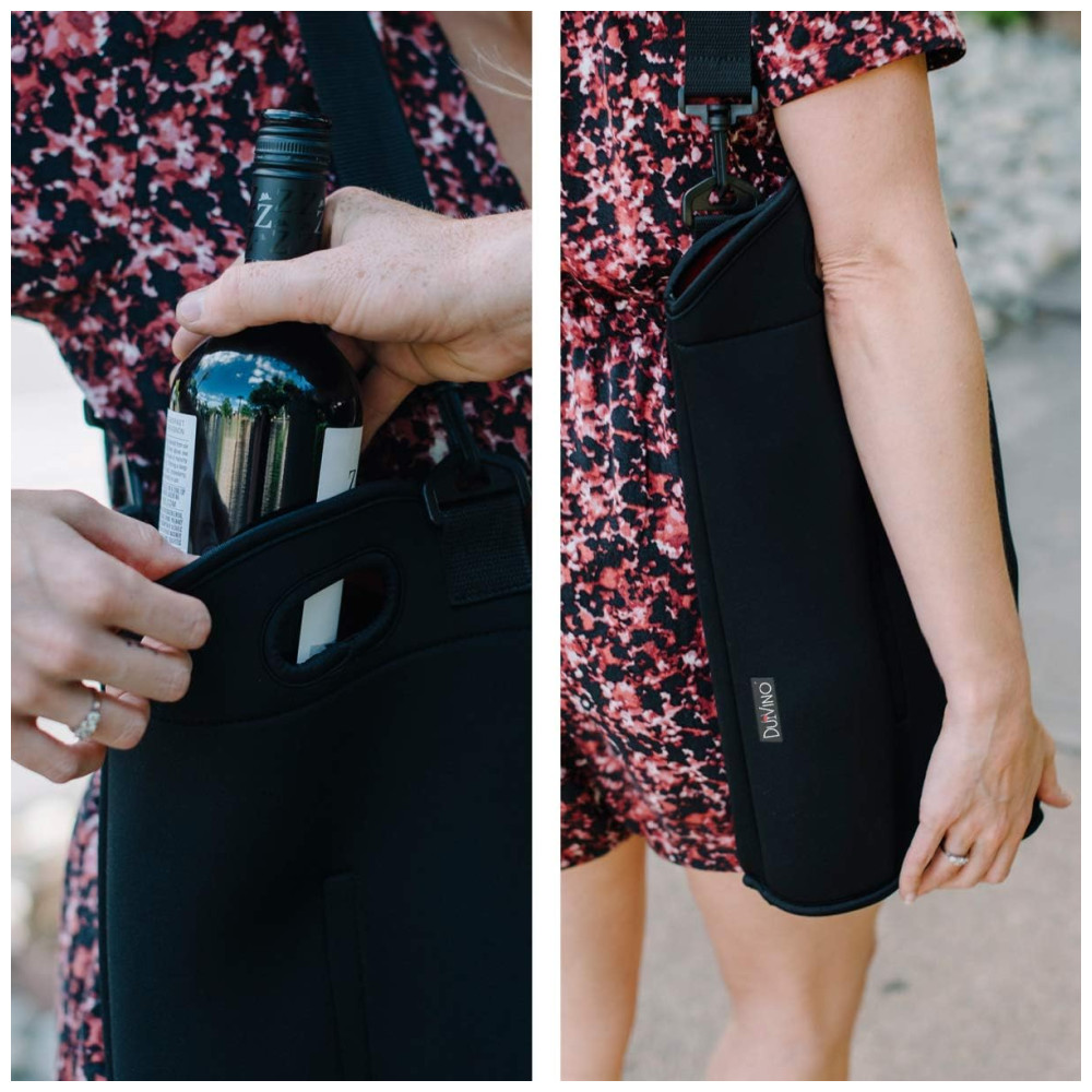 PONTA DE OMBRO DO BÔNUS Duas garrafas de vinho podem pesar até 6 libras. Nossa alça de ombro ajustável oferece alívio para carregar itens pesados e libera suas mãos. Remova a alça de ombro para lavar na máquina e secar.