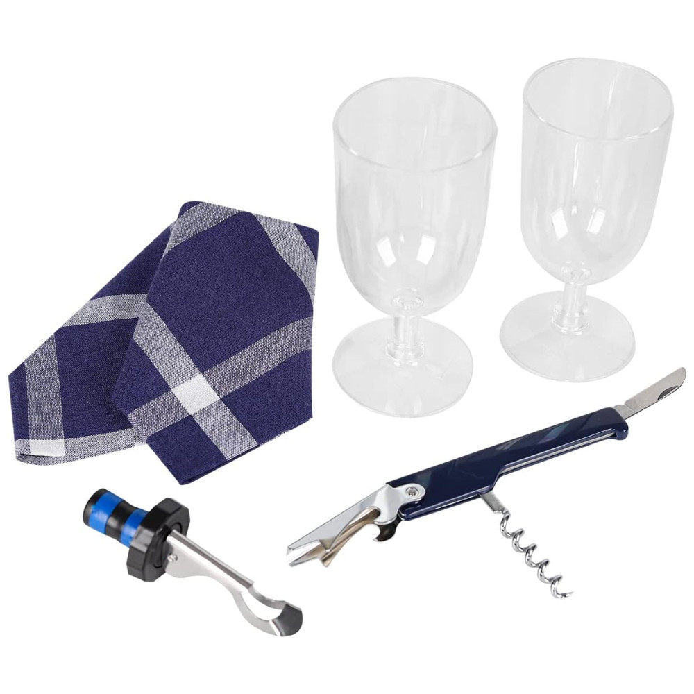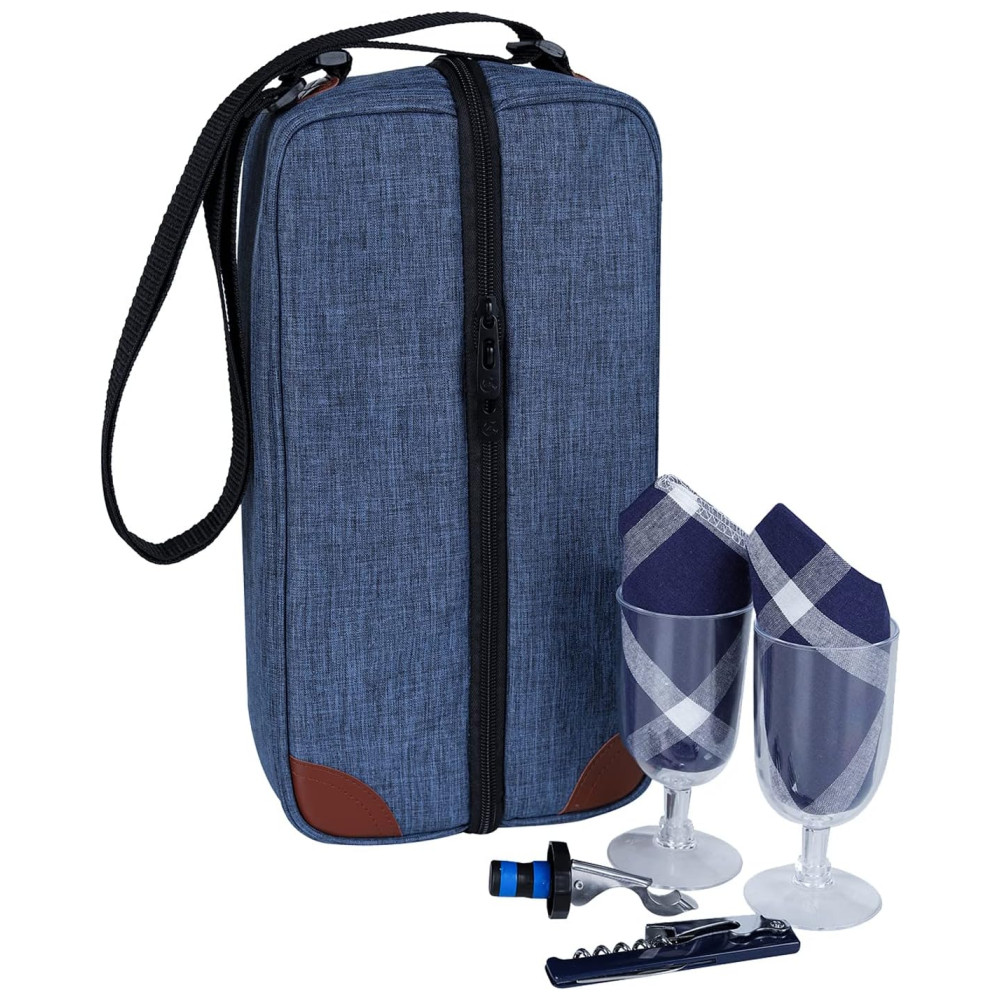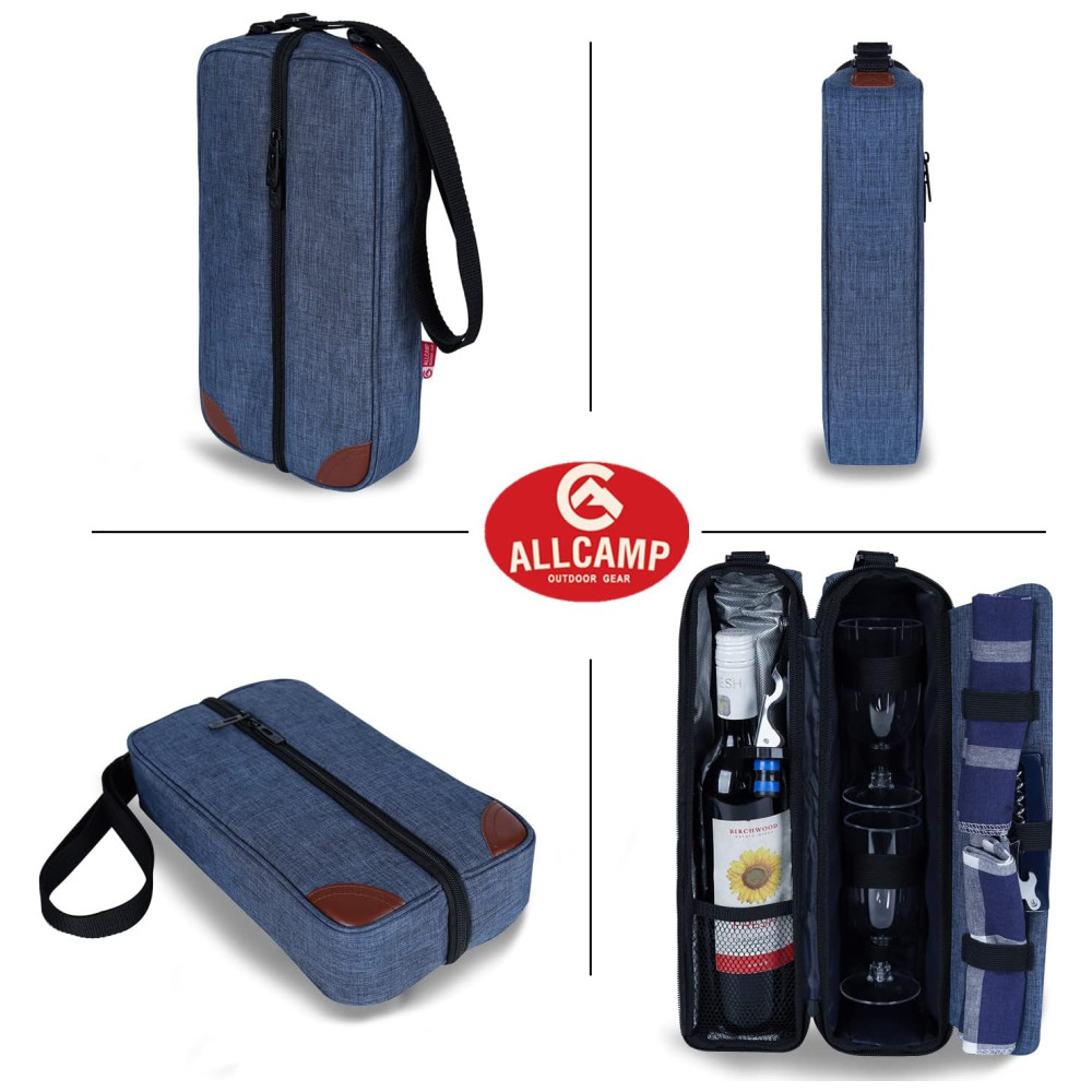 Bolsa Térmica para Vinho ALLCAMP com Compartimento Refrigerado – Conjunto de Piquenique com Duas Porções de Talheres – Azul