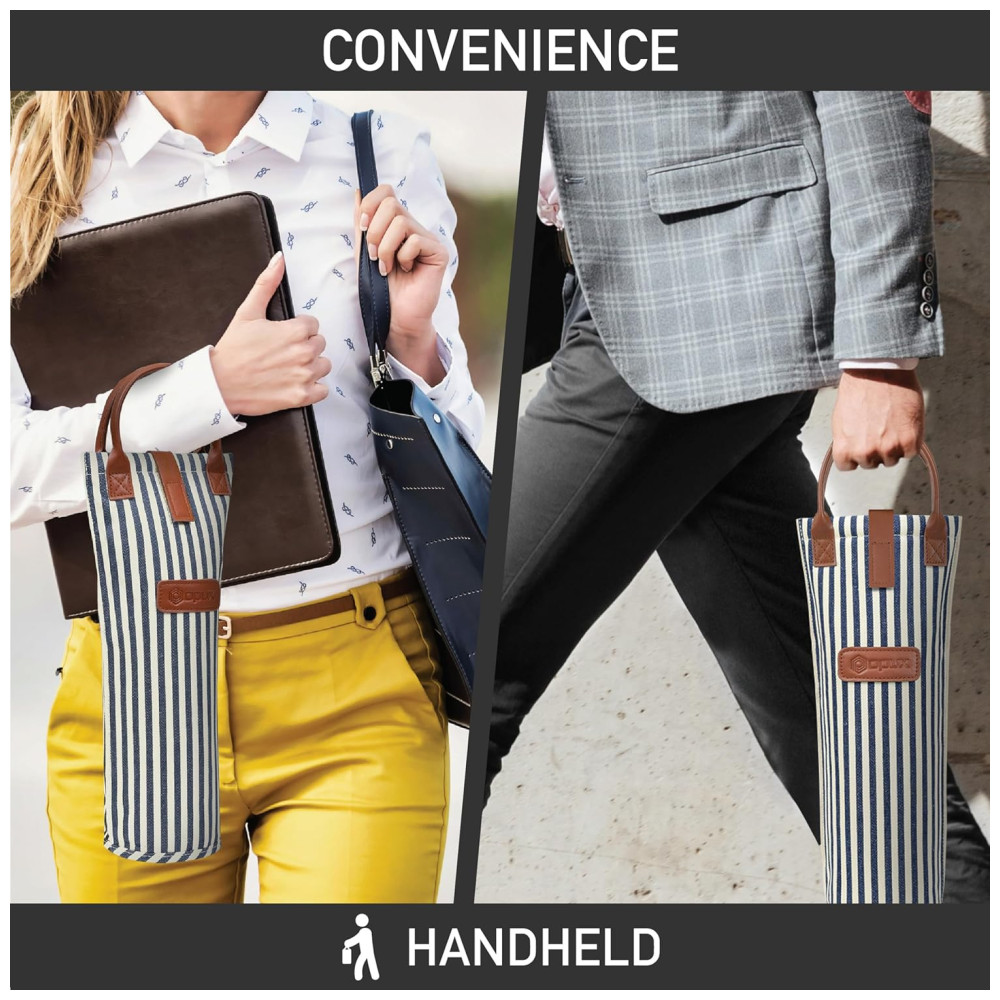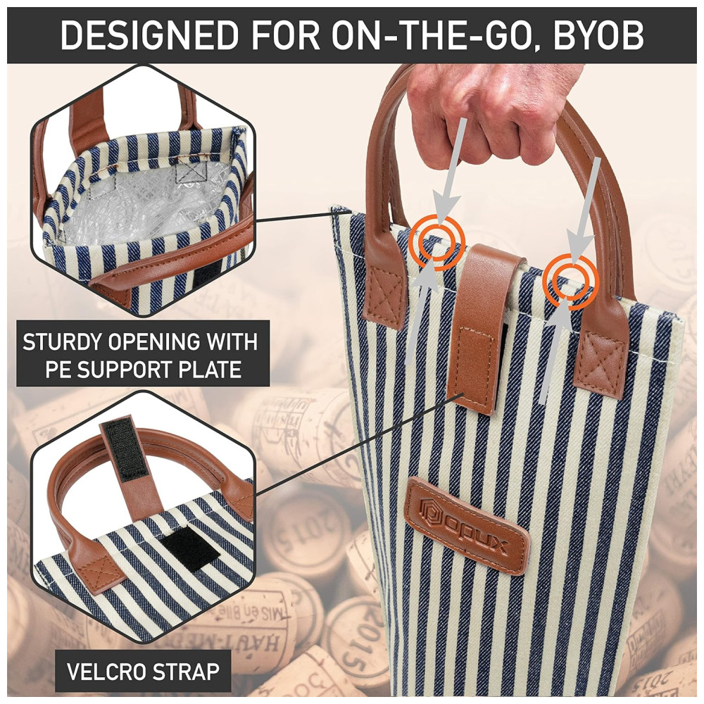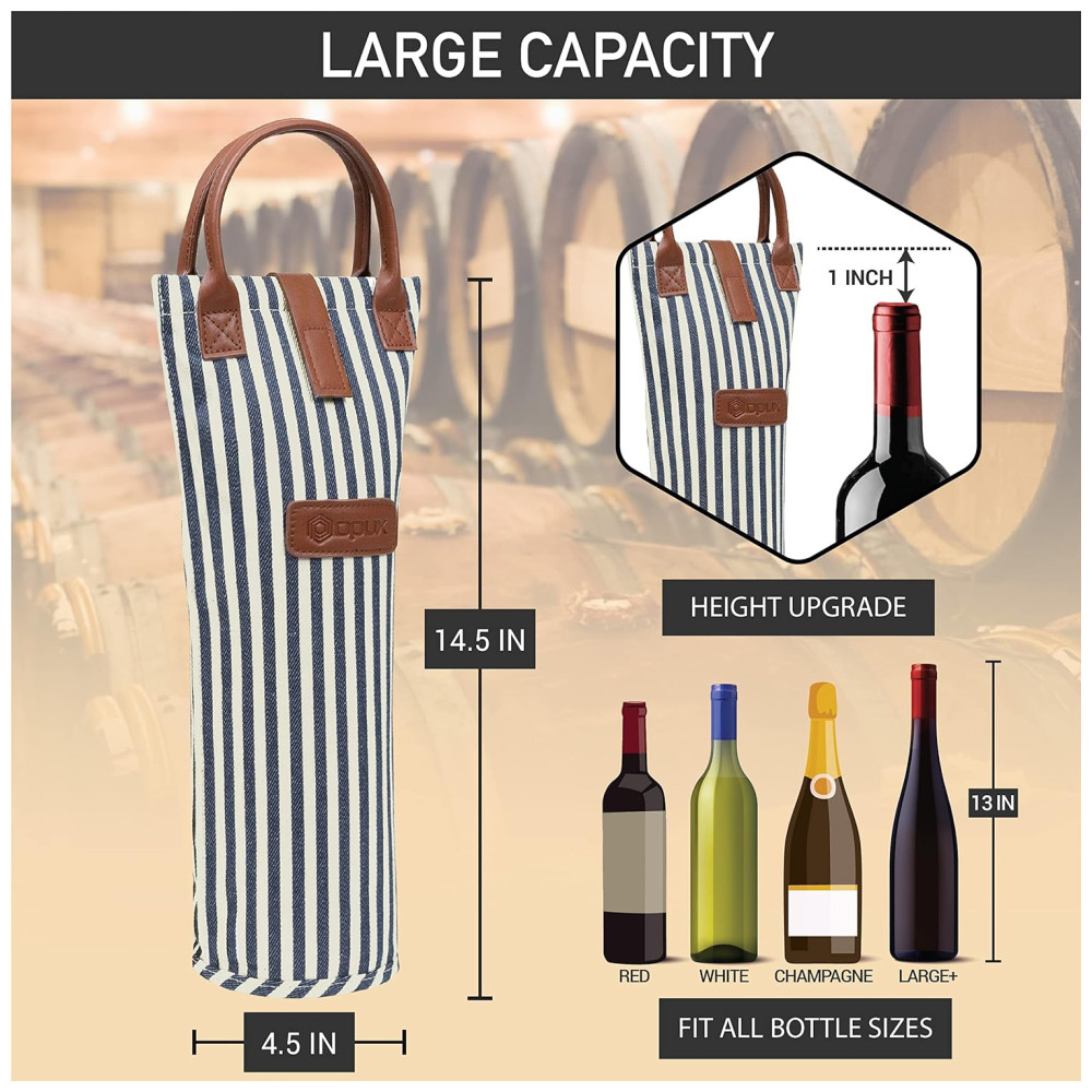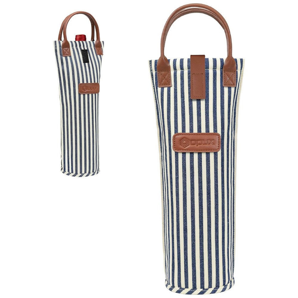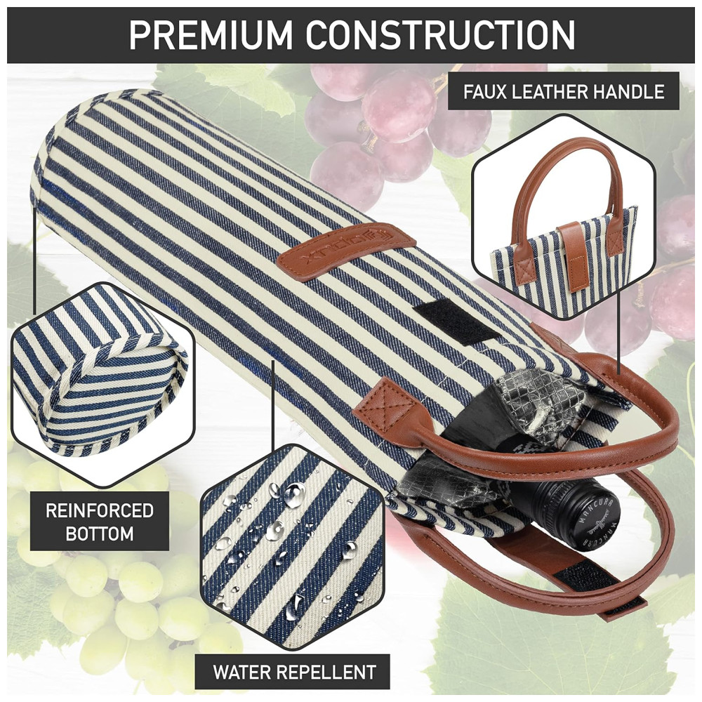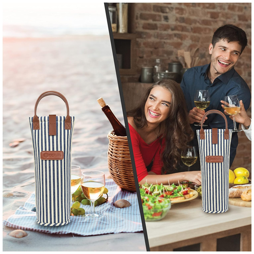 Bolsa Térmica para Vinho de 750ml: Ideal para Viagens e Piqueniques Suporte Isolado para Vinho Listras Azul MarinhoOpux