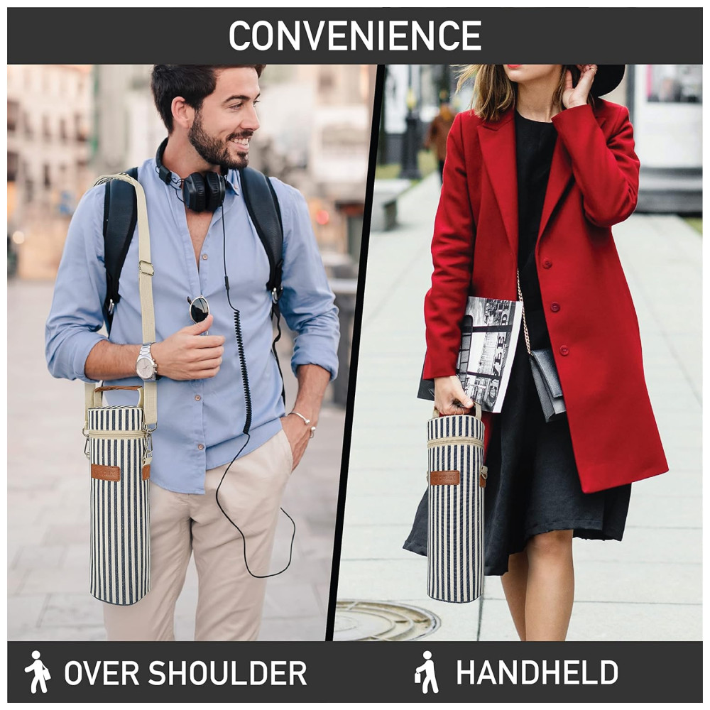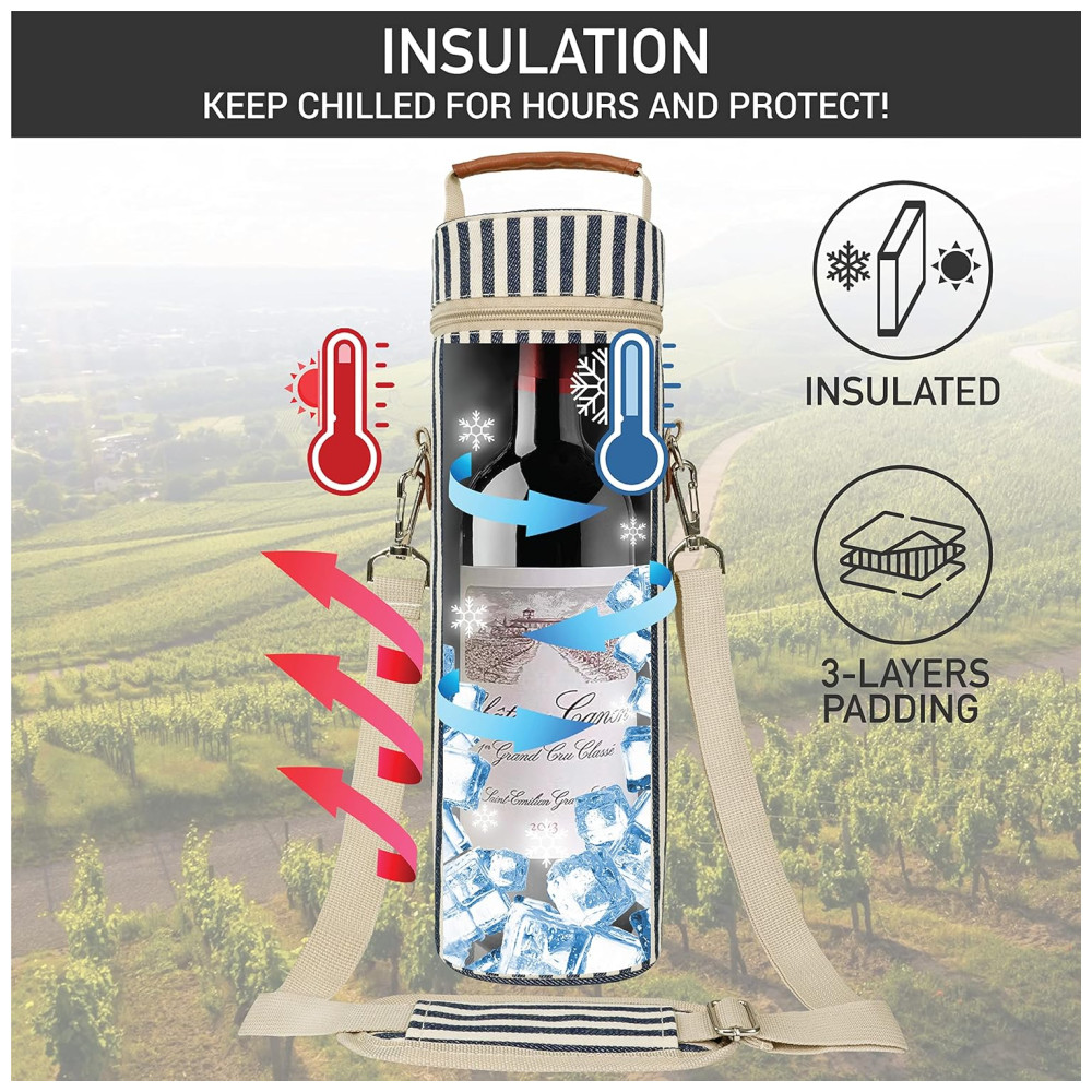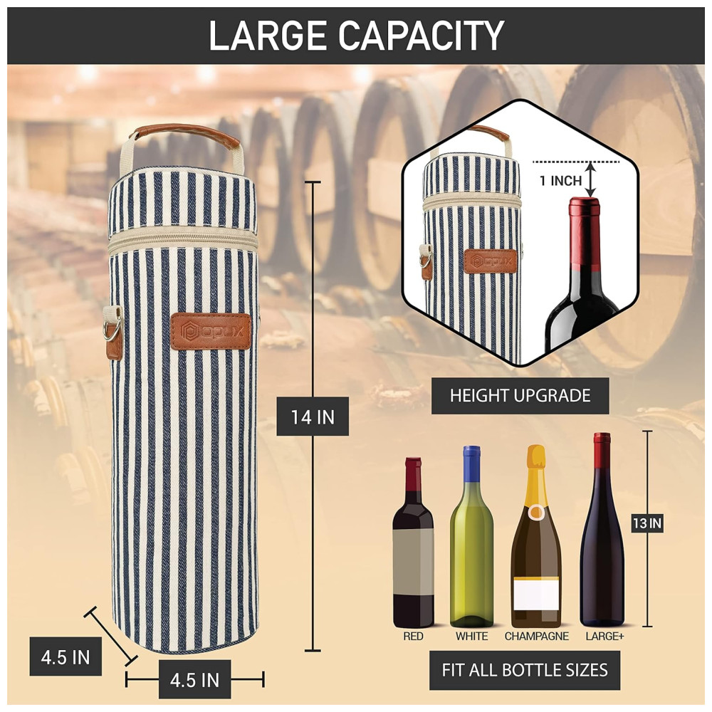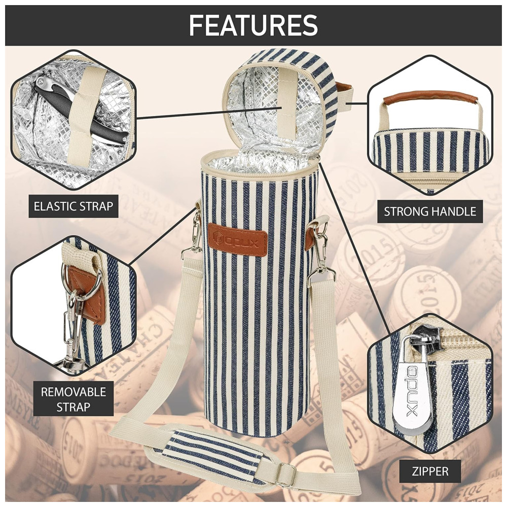 Bolsa Térmica para Vinho OPUX Single Bottle Carrier Transportador Isolado com Alça para Viagem Picnic e Praia Case com Zíper para Garrafa de 750ml