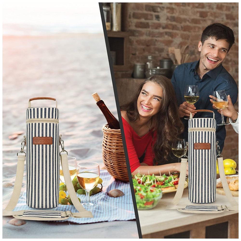 A Bolsa Térmica para Vinho OPUX Single Bottle Carrier é o acessório perfeito para transportar sua garrafa de vinho com elegância e praticidade. Ideal para viagens, piqueniques, praia, camping, concertos ao ar livre, restaurantes, festas e muito mais. Mantém sua garrafa gelada por horas com seu isolamento térmico de 3 camadas. Além de ser funcional, também oferece proteção, evitando que a garrafa quebre durante o transporte. Com alça de ombro ajustável e zíper, é fácil de limpar e pode ser usado como maleta de vinho para viagens de avião. Um presente perfeito para amantes de vinho em ocasiões especiais!