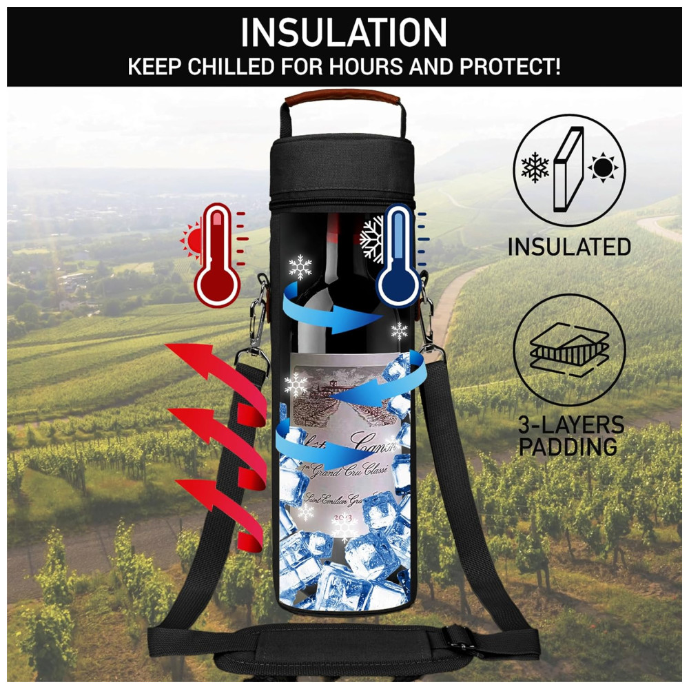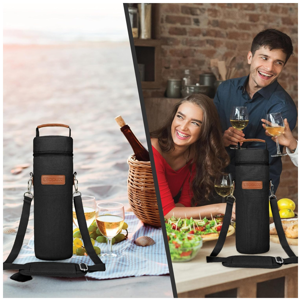 Bolsa Térmica para Vinho OPUX Single Bottle Porta-Garrafa Isolado 500ml com Alça para Viagem Picnic e Praia Bolsa para Presente de Vinho para Mulheres e Homens.