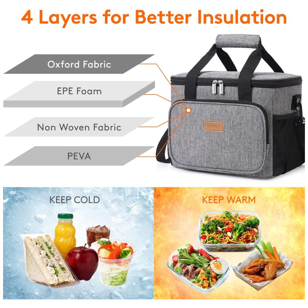 Bolsa Térmica Portátil 15L Mantém Quente Frio Por até 5H LIFEWIT Cinza