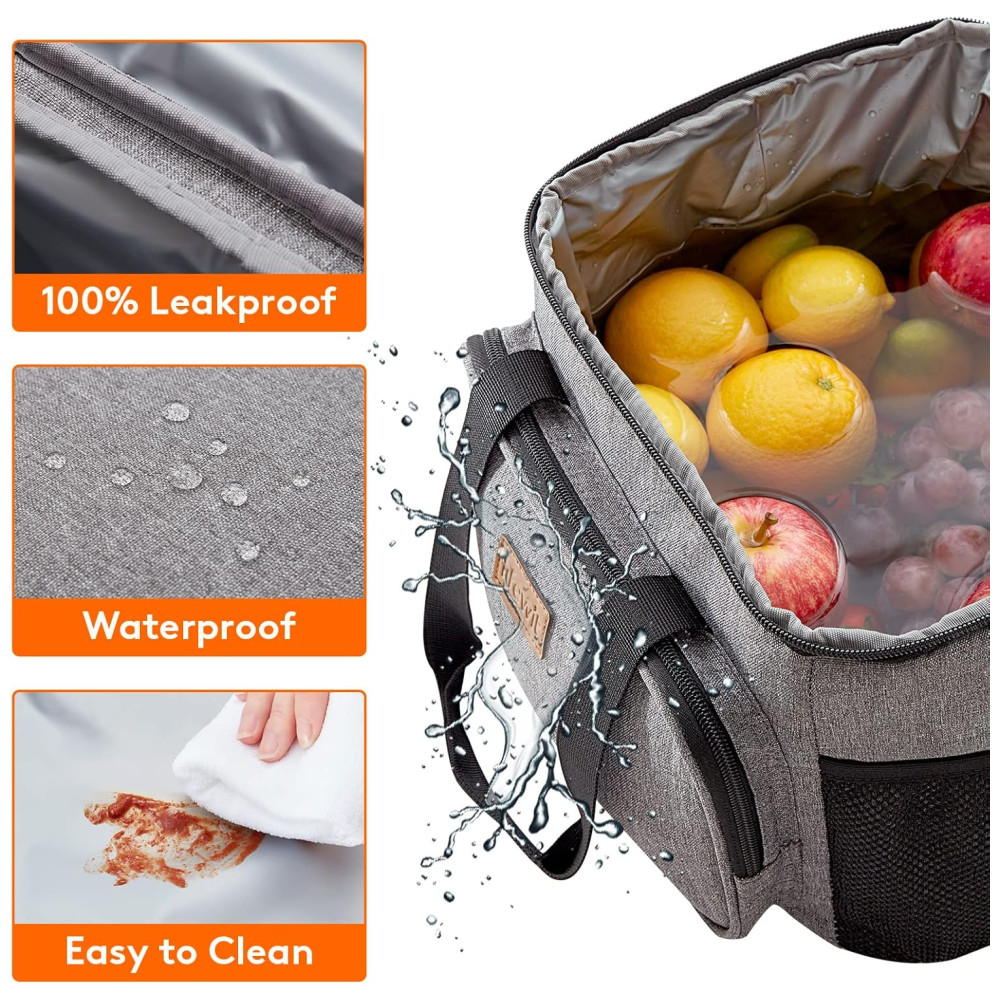 Isolamento de Longo Prazo A lancheira é feita de material isolado que pode manter alimentos e bebidas frios ou quentes por mais de 5 horas. Além disso, o forro interno é feito de folha de PEVA de grau alimentício para que você possa colocar seus alimentos diretamente na sacola. A espuma EPE de integrada oferece grande proteção para seus recipientes, alimentos e bebidas.