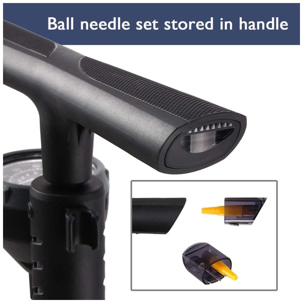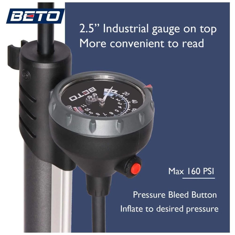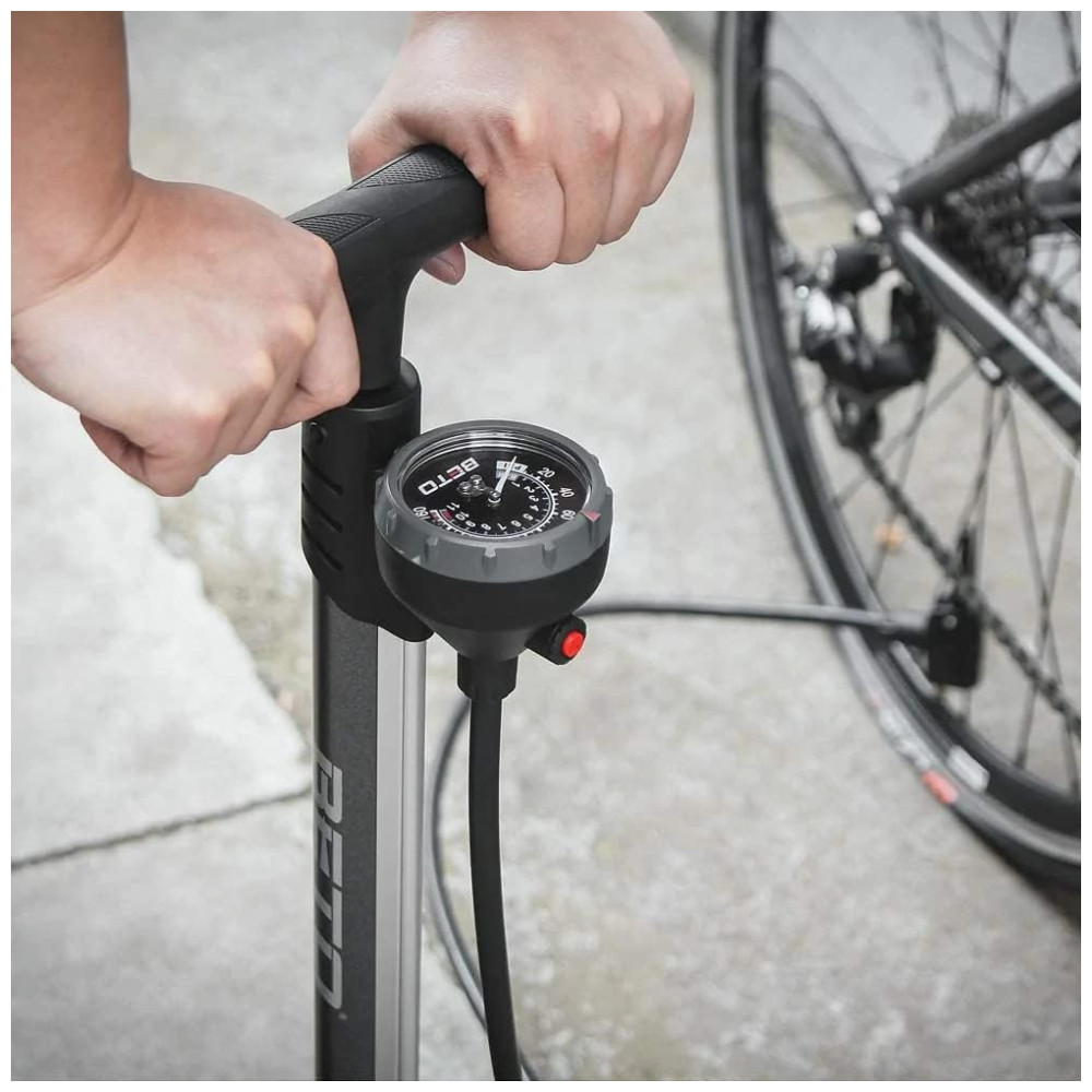 Bomba de Piso Ergonômica para Bicicleta com Medidor e Válvula Inteligente 160 PSI BETO Preto