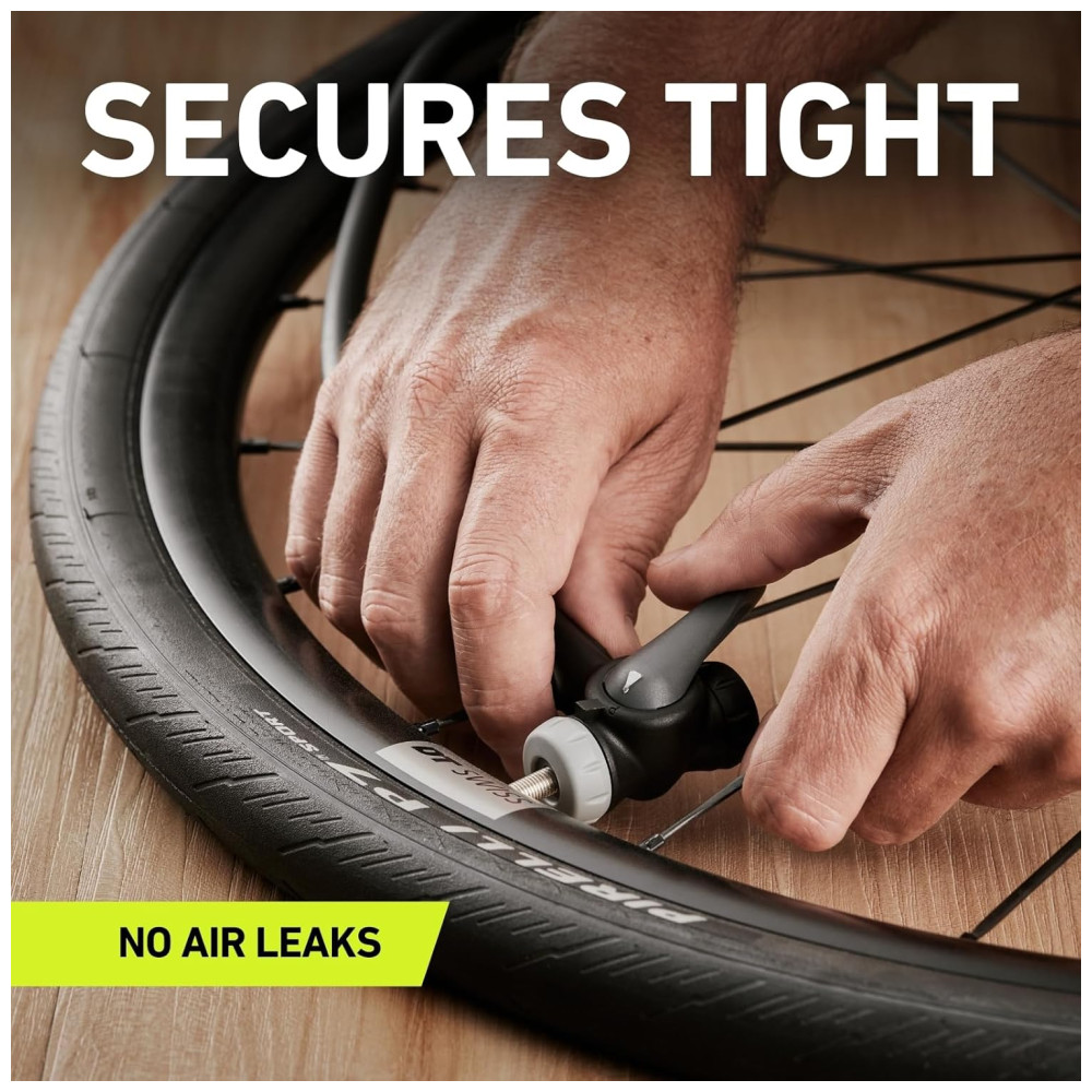 Válvula T rápida A bomba de bicicleta com válvula Presta também infla as válvulas Schrader, com um simples toque de um botão. A Rapid T Valve na bomba do pneu da bicicleta veda forte sem vazamentos irritantes