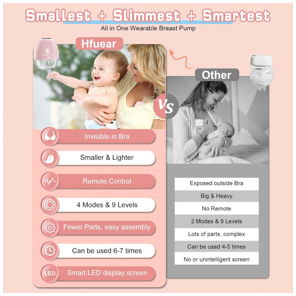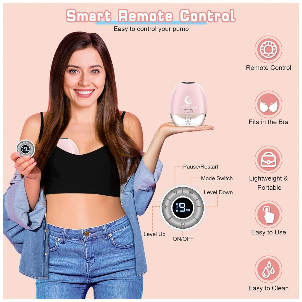 Bomba Tira Leite Elétrica com Controle Remoto 4 Modos 9 Níveis e Recarregável 2Un Hfuear Rosa