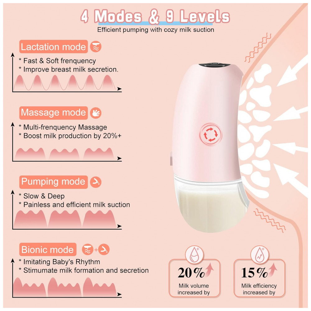4 modos eficientes e 9 níveis: Escolha entre 4 modos diferentes e 9 níveis de sucção ajustáveis para encontrar o ajuste perfeito para suas necessidades. Se você precisa de uma massagem suave, deseja r a lactação ou precisa bombear e zenar leite, esta bomba tira leite portátil tem o que você precisa. Além disso, sua função de memória inteligente lembrará sua última configuração para que você possa continuar de onde parou.