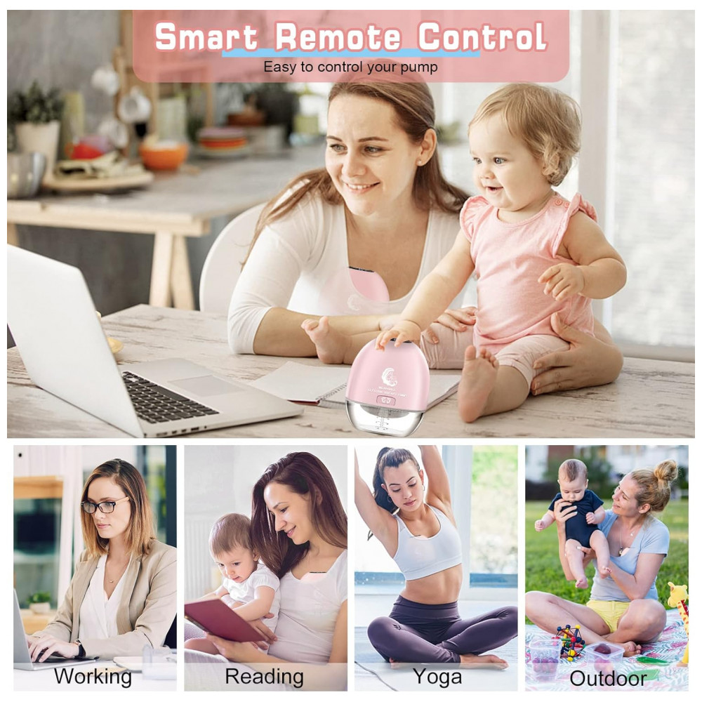 Bombeamento de controle remoto inteligente: Com nosso controle remoto inteligente, você pode controlar tudo sem precisar colocar a mão no sutiã. Ligue e desligue sua bomba tira leite, alterne os modos e ajuste os níveis de sucção, tudo com a conveniência do seu controle remoto. É perfeito para mães que precisam voltar ao trabalho ou simplesmente querem ser mais produtivas durante o dia.