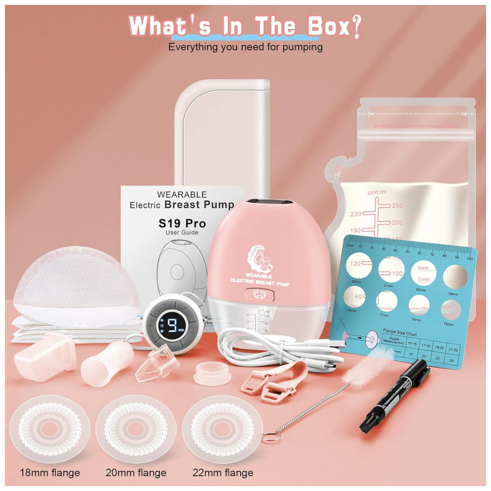 Tudo o que você precisa para bombear: Nossa bomba tira leite vestível vem com tudo que você precisa para começar, além de todas as partes da bomba tira leite elétrica vestível, também inclui fivelas de ajuste de sutiã, protetores de mama para amamentação, bolsas de zenamento de leite, zenamento de bomba sacos, escovas para mamadeiras, um cartão de medição de bicos e uma caneta marcadora. Além disso, oferecemos mais três opções diferentes de tamanhos de flange , e para garantir um ajuste confortável e personalizado para cada mãe