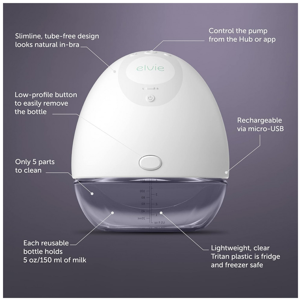 O MAIS INTELIGENTE: controle as bombas tira leite elétricas duplas Elvie a partir do seu telefone, monitore os volumes de leite em tempo real e acompanhe seu histórico de extração sem usar o sutiã. Comece com orientações completas no aplicativo e salve suas configurações para a próxima vez