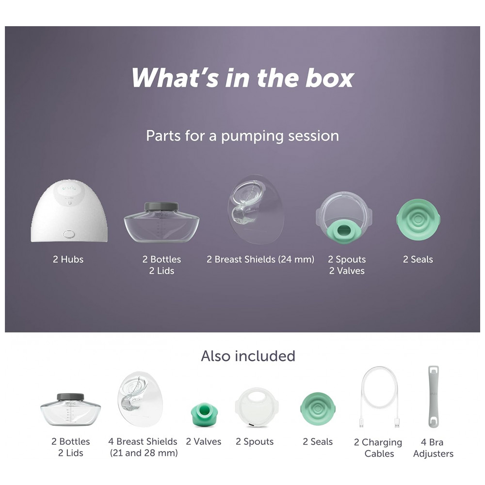 O MENOR: A bomba tira leite vestível Elvie é a menor e mais fina bomba tira leite com sutiã para máxima discrição enquanto bombeia com as mãos livres. Sinta se confiante bombeando onde quiser com os pés para cima ou em um jogo de futebol