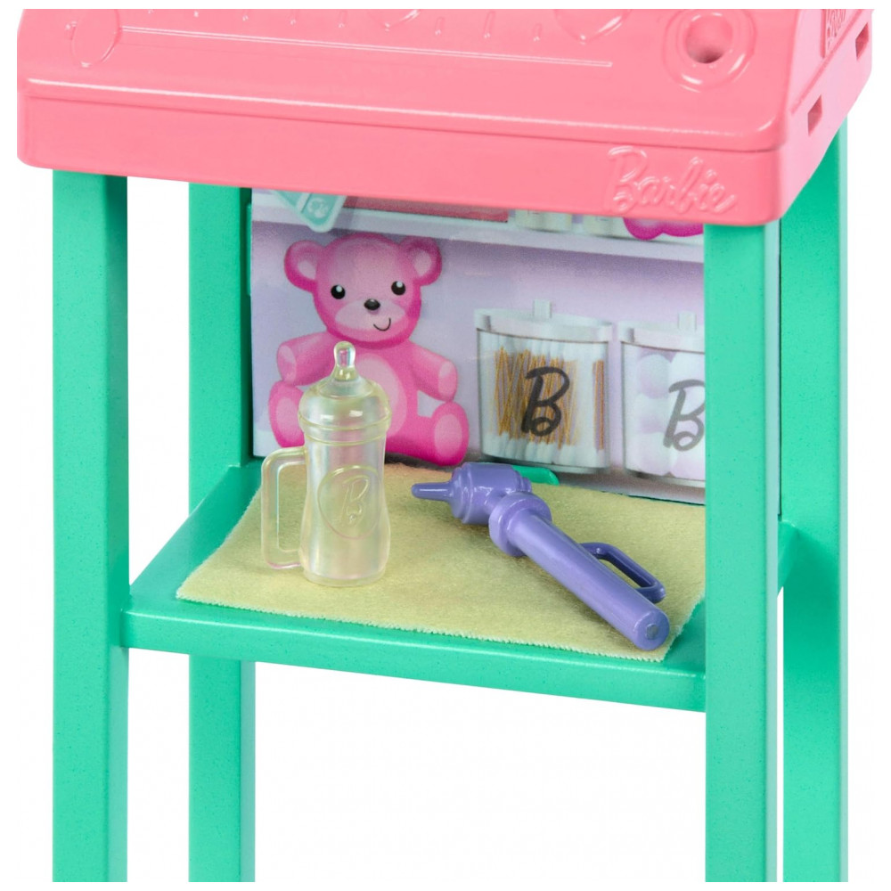 Nome do produto: Barbie Baby Doctor Playset with Brunette Fashion Doll Wearing Pink Scrubs, Baby Doll, Furniture & Accessories