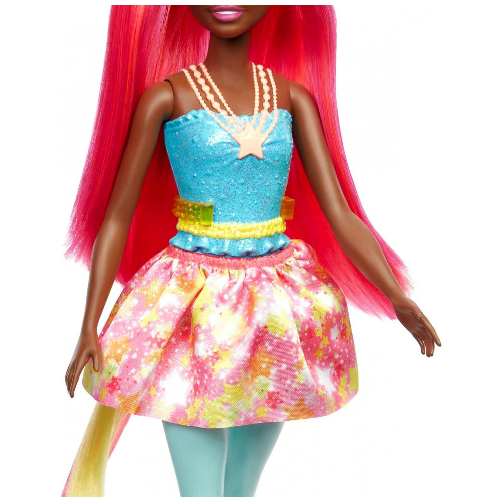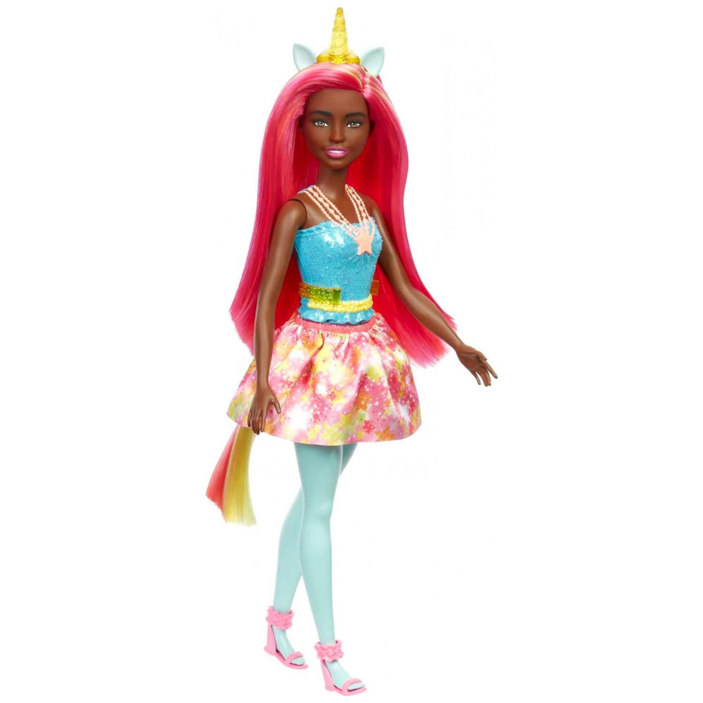 Boneca Barbie Dreamtopia Unicórnio Cabelo Amarelo Rosa com Saia Faixa de Cabeça de Cauda de Unicórnio Removível