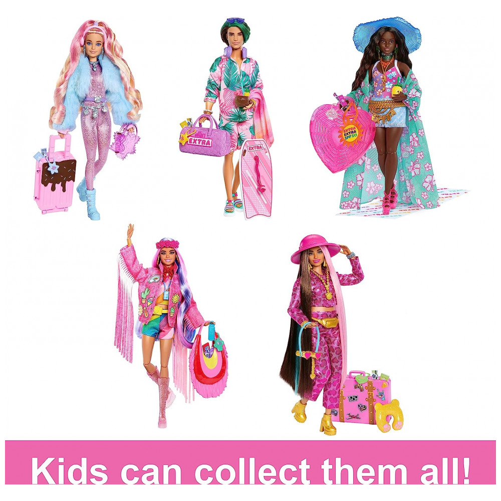 As bonecas Barbie Extra Fly estão prontas para férias em tendências de moda com estilo extra Cada boneca vem com acessórios temáticos de viagem e peças de estilo que fazem uma declaração importante.