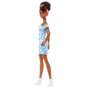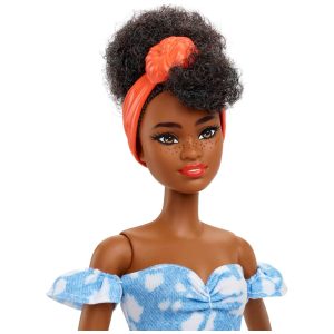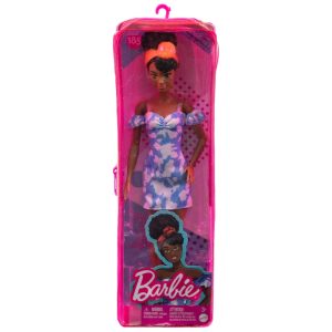 Boneca Barbie Fashionistas 185 com Cabelo Preto Preso e Vestido Jeans Colorido