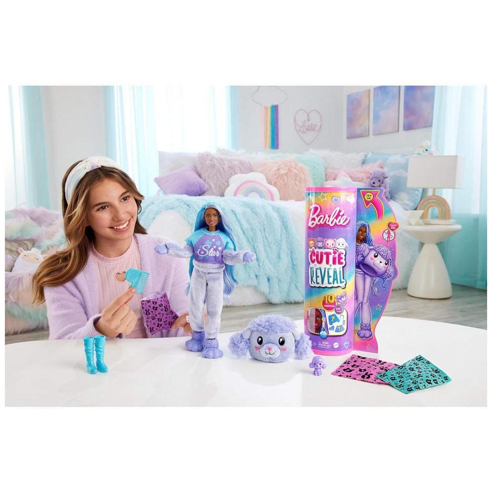 Com 10 surpresas em 1 pacote, as bonecas Barbie Cutie Reveal Cozy Cute Tees Series oferecem a mais fofa experiência de unboxing com amigos animais de pelúcia, moda e diversão transformadora Qual boneca você vai revelar