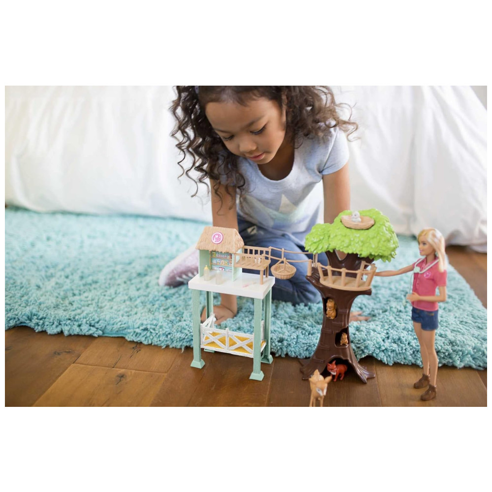 Boneca Barbie Veterinária com 8 Animais de Estimação e Casa na Árvore Rosa