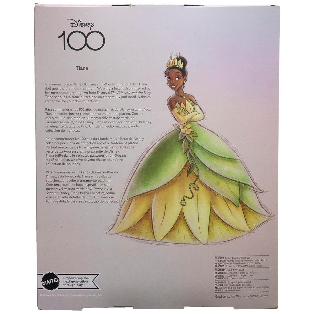 Boneca Colecionável Tiana para Comemorar os 100 Anos de Maravilhas da Disney Mattel