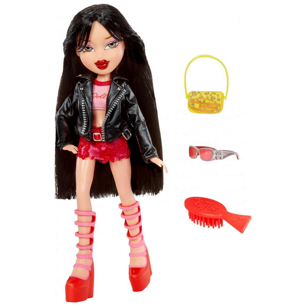 As Garotas com uma Paixão pela Moda estão prontas para enfrentar o dia com estilo! De goles de café a passeios de compras, elas estão saindo no seu próprio ritmo com os looks mais maneiros. Seja percorrendo as ruas da cidade ou arrasando na pista de dança, quando Cloe, Yasmin, Jade e Sasha estão saindo, elas estão arrasando com suas super estilosas roupas. Jade veste uma jaqueta preta de couro falso sobre uma camiseta rosa. Sua saia de renda vermelha e cinto combinam com suas botas altas e robustas. Os acessórios certos podem elevar qualquer look! Jade vem com uma bolsa amarela de estampa de leopardo e óculos de sol. Seu visual apresenta franja lateral e uma maquiagem vermelha com lábios em destaque. A paixão de Jade pela moda é o estilo que faz uma declaração! Suas amigas a chamam de Kool Kat porque ela é a gata mais legal que conhecem! VESTIR PARA EXPRESSAR A paixão de Jade pela moda é o estilo que faz uma declaração! Suas amigas a chamam de Kool Kat, então, é claro, ela montou um visual totalmente legal! MODA PARA SAIR Jade veste uma jaqueta de couro falso preta sobre uma camiseta rosa. Sua saia de renda vermelha e cinto combinam com suas botas altas e robustas. ACESSORIZE Jade vem com uma bolsa amarela de estampa de leopardo e óculos de sol. EMBALAGEM DESLUMBRANTE Embalagem deslumbrante brilhando com estilo e personalidade. Apresentando letras metálicas e perguntas no estilo de revista respondidas por suas favoritas. INCLUI Boneca de moda Bratz com roupa, bolsa, óculos de sol e escova.
