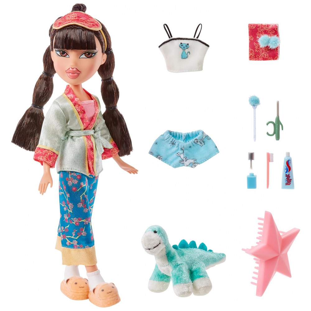Boneca de Moda Bratz Slumber Party Jade com 2 Conjuntos de Pijamas Pelúcia e Acessórios