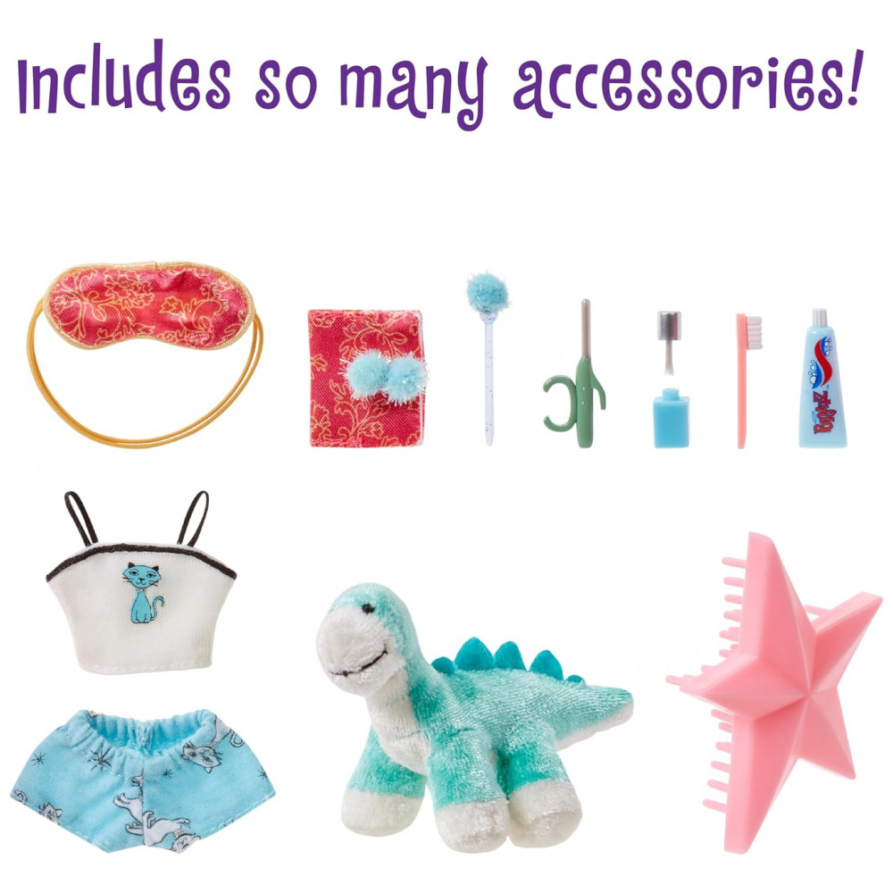 Prepare-se para uma festa do pijama inesquecível com a Boneca de Moda Bratz Slumber Party Jade! Junte-se às Bratz e divirta-se com muito estilo nesse encontro que mistura diversão e moda. Com duas opções de pijamas/loungewear, Jade mostra que é possível ficar confortável e estilosa ao mesmo tempo. Além das roupas, ela vem com roupão, máscara de dormir, pelúcia de dinossauro, pantufas felpudas, diário, caneta, esmalte, escova de dentes, pasta de dente, babyliss, escova de cabelo e pôster. A embalagem icônica e os detalhes especiais tornam esta boneca uma adição perfeita para colecionadores de todas as idades. Não perca a chance de colecionar todas as bonecas da linha Bratz Slumber Party!