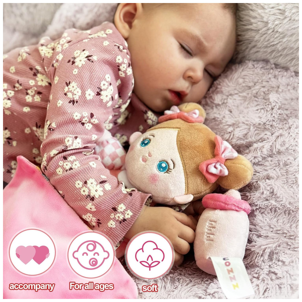 A boneca de pano OUOZZZ Soft é feita com tecidos de alta qualidade, super macios, seguros, atóxicos, amigáveis à pele sensível e laváveis à máquina. Com design exclusivo, criado por 9 designers especializados para crianças, proporciona conforto, segurança, autoconfiança e responsabilidade através de jogos de faz de conta. Leve e fácil de carregar, ideal para brincar e até mesmo para dormir, oferecendo mais segurança às crianças. Um presente perfeito para diversas ocasiões, além de ser um adorno encantador em qualquer ambiente.