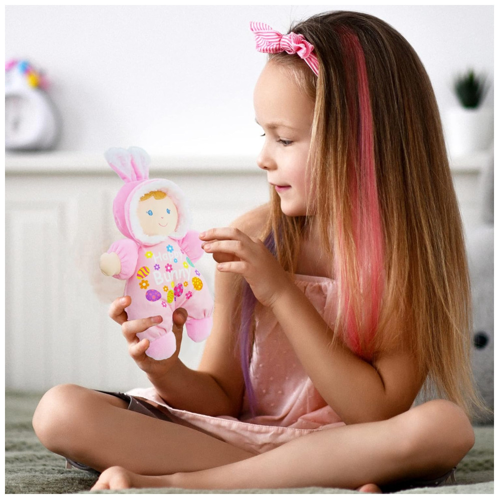 Toda criança precisa de um companheiro constante durante a primeira infância. A boneca Olivia é macia e aconchegante, destinada a ser a escolha preferida dos pequenos. Com detalhes faciais bordados e estampas fofas temáticas de Páscoa em seu pijama, Olivia é o presente perfeito para chás de bebê e Páscoa. A boneca emite sons de chocalho para atrair a atenção do seu bebê. Com aproximadamente 20cm de altura, é leve e fácil de carregar, sendo uma ótima companhia de viagem. Feita com algodão macio, é ideal para acalmar crianças desde o nascimento. Além de conforto e segurança, Olivia desenvolve habilidades emocionais e sociais, incentivando o jogo simbólico desde cedo. Segura para bebês, com olhos bordados, nariz e sorriso, além de um chapéu costurado. Uma opção perfeita para brincadeiras seguras e divertidas.