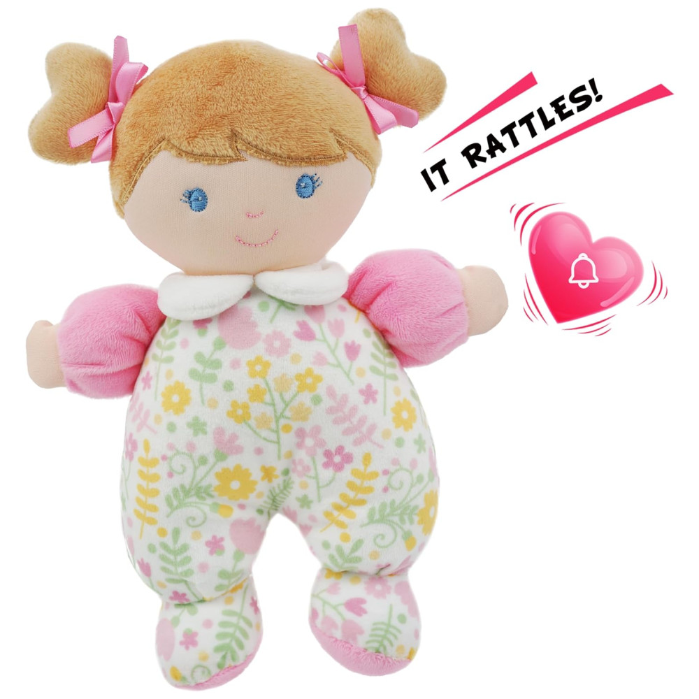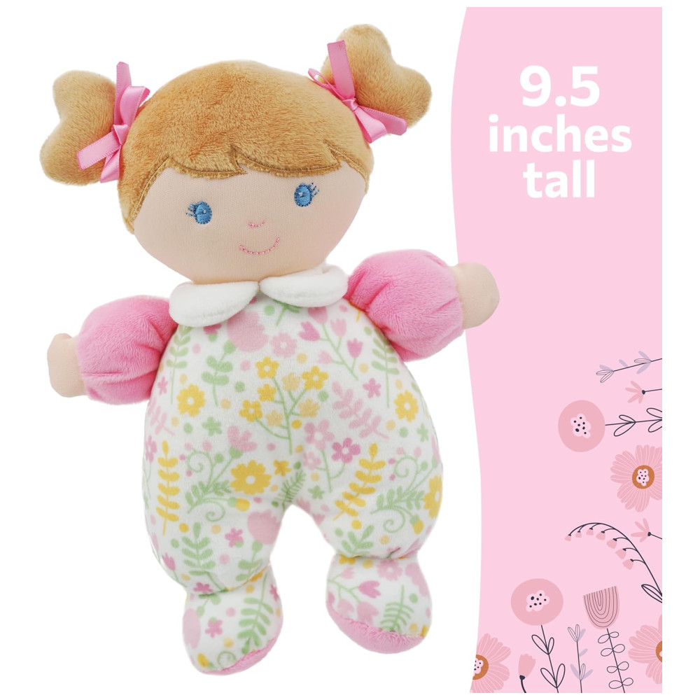 Boneca de Pelúcia Blossom da June Garden Minha Primeira Boneca com Roupa Floral Rosa