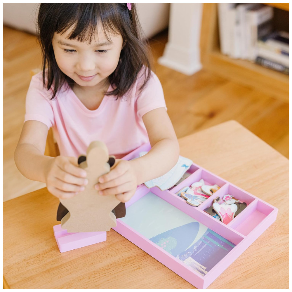 Este conjunto de brinquedos de simulação de boneca de madeira magnética Melissa Doug Disney Cinderela é perfeito para crianças que adoram se divertir com faz de conta. O conjunto inclui uma figura magnética de madeira com um suporte de madeira e peças de roupa magnéticas, permitindo que as crianças misturem e combinem diferentes roupas e acessórios para criar looks exclusivos da Cinderela.