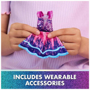 Traga para casa a magia do filme Gabbys Dollhouse com a boneca Mertastic Gabby. Com 15 centímetros de altura, esta encantadora boneca Gabby, com cabelo natural para pentear, está vestida com seu vestido de sereia e vem com acessórios incríveis, como tiara de orelhas de gato removível, colar e cinto temáticos de sereia reluzentes. Convide as crianças para explorar de maneira incrível com esses brinquedos educativos cativantes. Essa boneca é uma forma divertida de inspirar o faz de conta e encorajar explorações incríveis com esses adoráveis brinquedos da Gabby para crianças. Os brinquedos da casa de bonecas da Gabby são presentes perfeitos para crianças reviverem momentos adoráveis do filme Gabby e criarem novas aventuras na casa de bonecas da Gabby, com acessórios de móveis, seus amigos gatos e brinquedos de sereias fantásticas, para horas intermináveis de aventuras. A boneca Mertastic Gabby tem 15 centímetros de altura, com cabelo natural para pentear e estilizar, vem com acessórios incríveis que inspirarão um faz de conta cativante. Gabby parece exatamente como no filme, em seu vestido de sereia, com sua tiara de orelhas de gato removível e outros acessórios para misturar e combinar. As crianças vão adorar criar contos mágicos e recriar suas cenas favoritas do filme Gabbys Dollhouse, com Gabby e seus amigos gatos. Construa um Mundo de Casa de Bonecas com salas temáticas, móveis e figuras de brinquedo para criar um mundo de casa de bonecas que ajuda as crianças a desenvolver a imaginação com brinquedos de faz de conta. Colecione Todos: Os brinquedos da Casa de Bonecas da Gabby são brinquedos pré-escolares para crianças que adoram brincar com acessórios de bonecas, brinquedos surpresa, animais de pelúcia, brinquedos para meninas, quebra-cabeças e jogos de tabuleiro. Inclui 1 Boneca Gabby, 2 Acessórios.