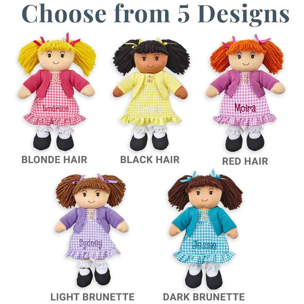 UMA AMIGA PARA A VIDA Ideal para o Natal! Imagine todas as aventuras que a sua pequena terá com uma boneca que pode ser personalizada para se parecer com ela! Esta boneca de pano será sua companheira constante. ÚNICA E PERSONALIZADA Escolha entre cabelos castanhos escuros, loiros, castanhos claros, pretos ou vermelhos. Personalize esta boneca fofa com qualquer nome bordado de até 12 caracteres. UMA VERSÃO ATUALIZADA DE UM CLÁSSICO A tradição de brincar com uma boneca de pano vem de muitos anos atrás, mas esta versão moderna com certeza encantará. Cheia de personalidade e feita com atenção aos detalhes, é uma lembrança para a vida toda! QUALIDADE PREMIUM Esta boneca de pano de 38 cm de altura, com olhos brilhantes, é feita de 100% poliéster macio. Limpeza local. Adequada para crianças a partir de 3 anos. Importada para fabricação final localmente. UM PRESENTE ADORÁVEL Não importa para qual criança você está comprando – filha, sobrinha, neta ou amiga da família – esta boneca de pano com certeza será um sucesso no Natal, aniversários ou apenas porque sim.