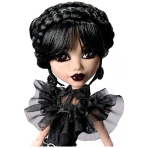 Boneca colecionável inspirada na icônica personagem Wednesday Addams com vestido gótico elegante