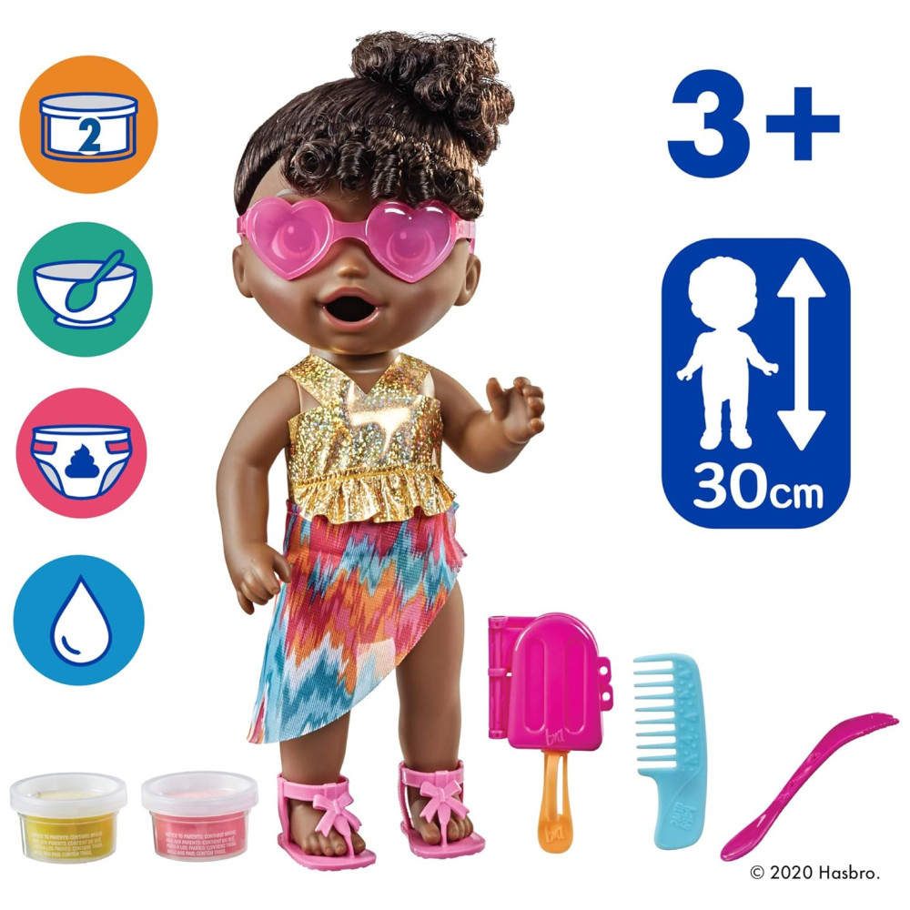 Boneca Sunshine Lanches com Tema de Verão Molde de Picolé Come e Faz Cocô para Crianças Acima de 3 Anos Baby Alive Cabelo Preto