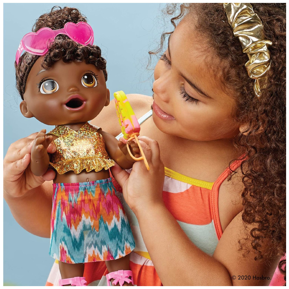 Com suas lindas roupas e acessórios com tema de verão, a boneca Baby Alive Sunshine Snacks é um presente de aniversário ou feriado de sucesso para as crianças É um ótimo brinquedo para meninas e meninos a partir de 3 anos. Baby Alive e todas as propriedades relacionadas são marcas registradas da Hasbro.