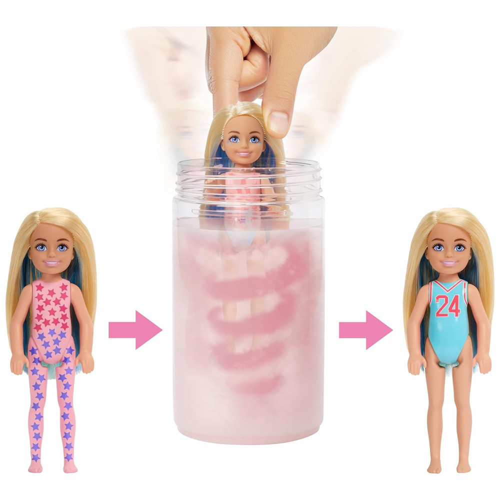 Com 6 surpresas em 1 pacote, as bonecas Barbie Chelsea Color Reveal oferecem todo tipo de prazer as crianças se divertem revelando a Sporty Series com a Color Reveal Innovation
