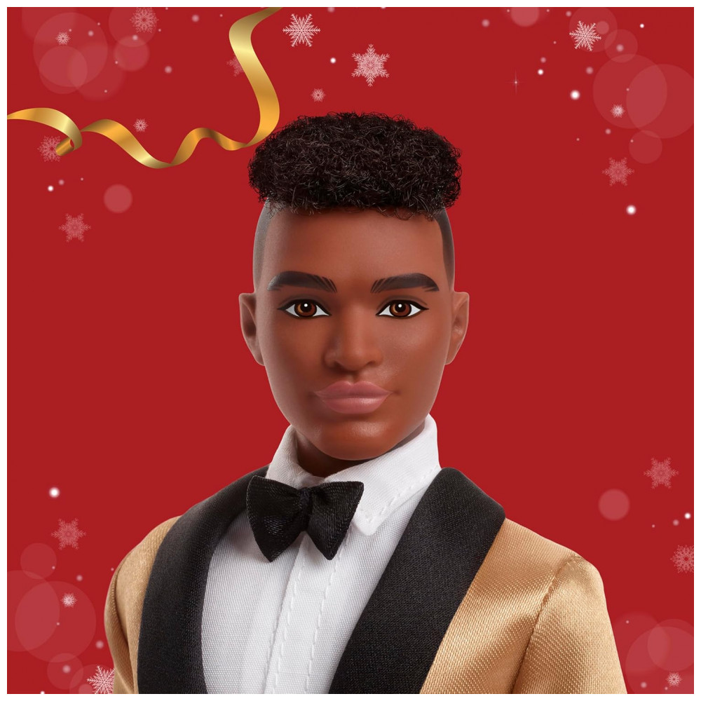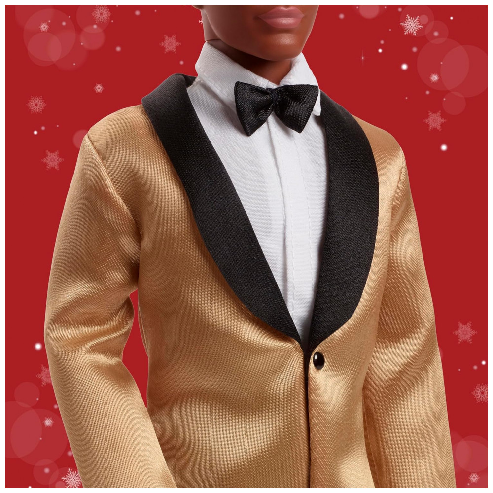 Boneco Barbie Signature Holiday Ken 2025 cabelo castanho escuro terno com blazer dourado base e certificado 2025
