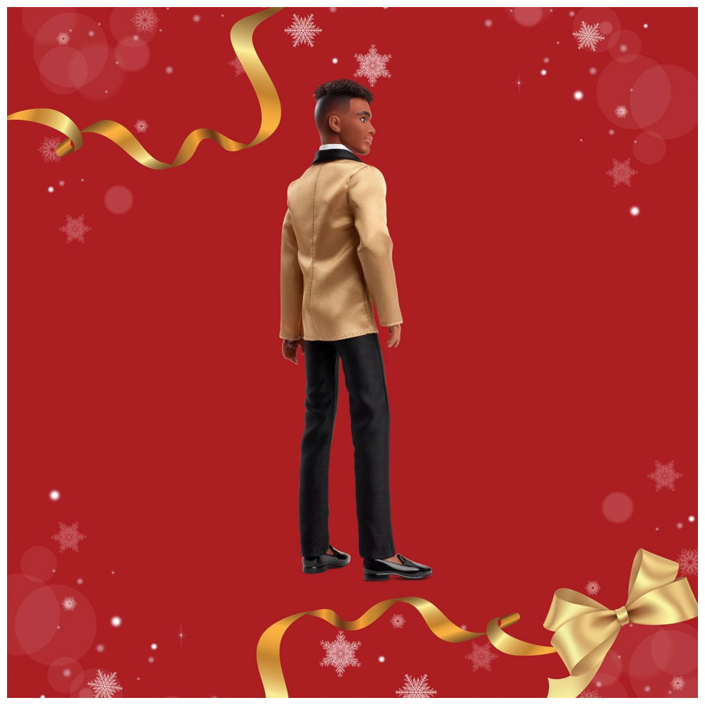 Nome do produto: Barbie Signature 2025 Holiday Dark Brown Hair Ken Collectible Fashion Doll Wearing Full Suit with Golden Jacket in Displayable Packaging & Doll Stand