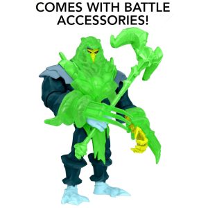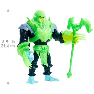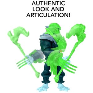 Além da armadura de batalha impressionante, o boneco de Esqueleto vem com 4 acessórios inspirados na série animada, permitindo que os colecionadores recriem suas cenas favoritas e inventem novas histórias cheias de ação e emoção.