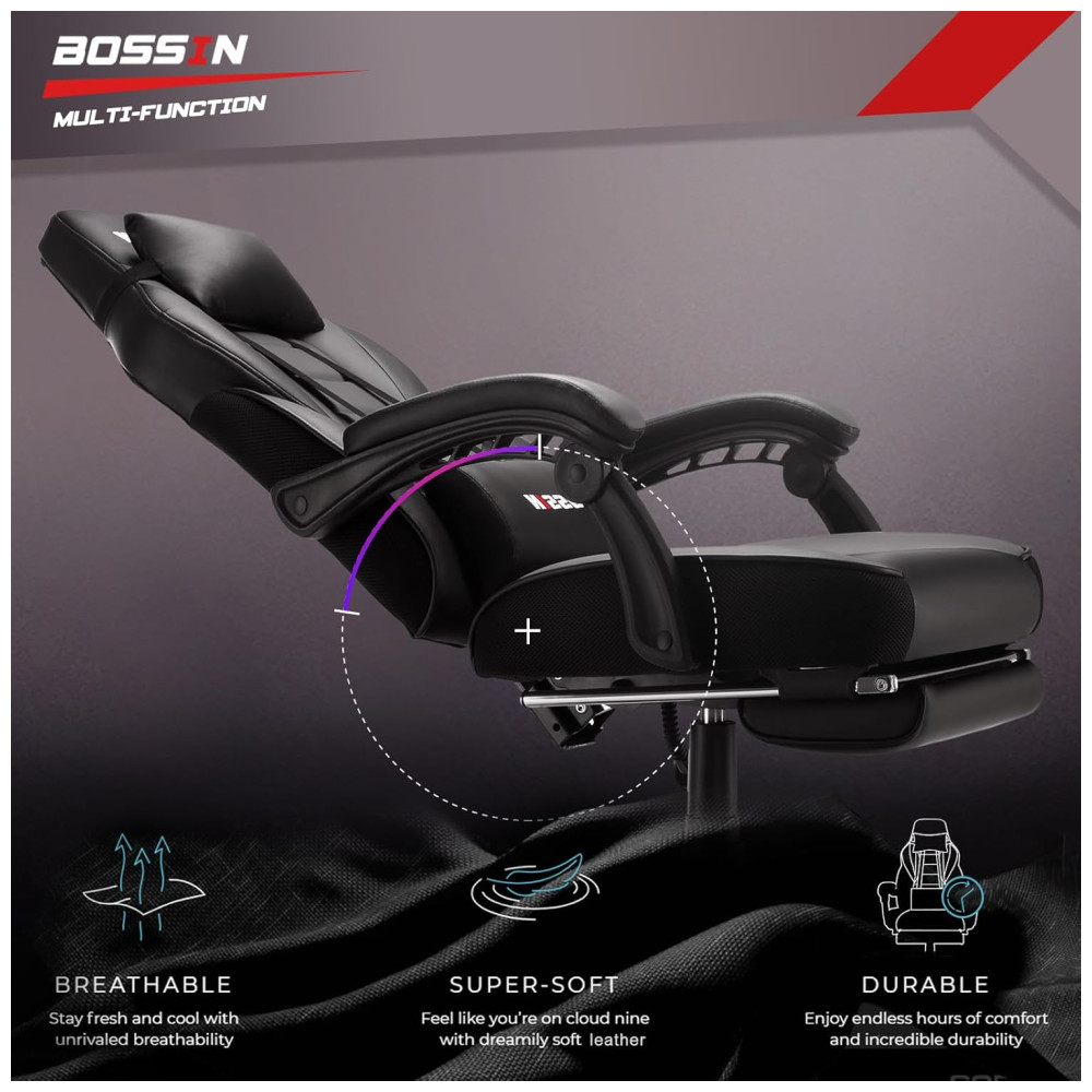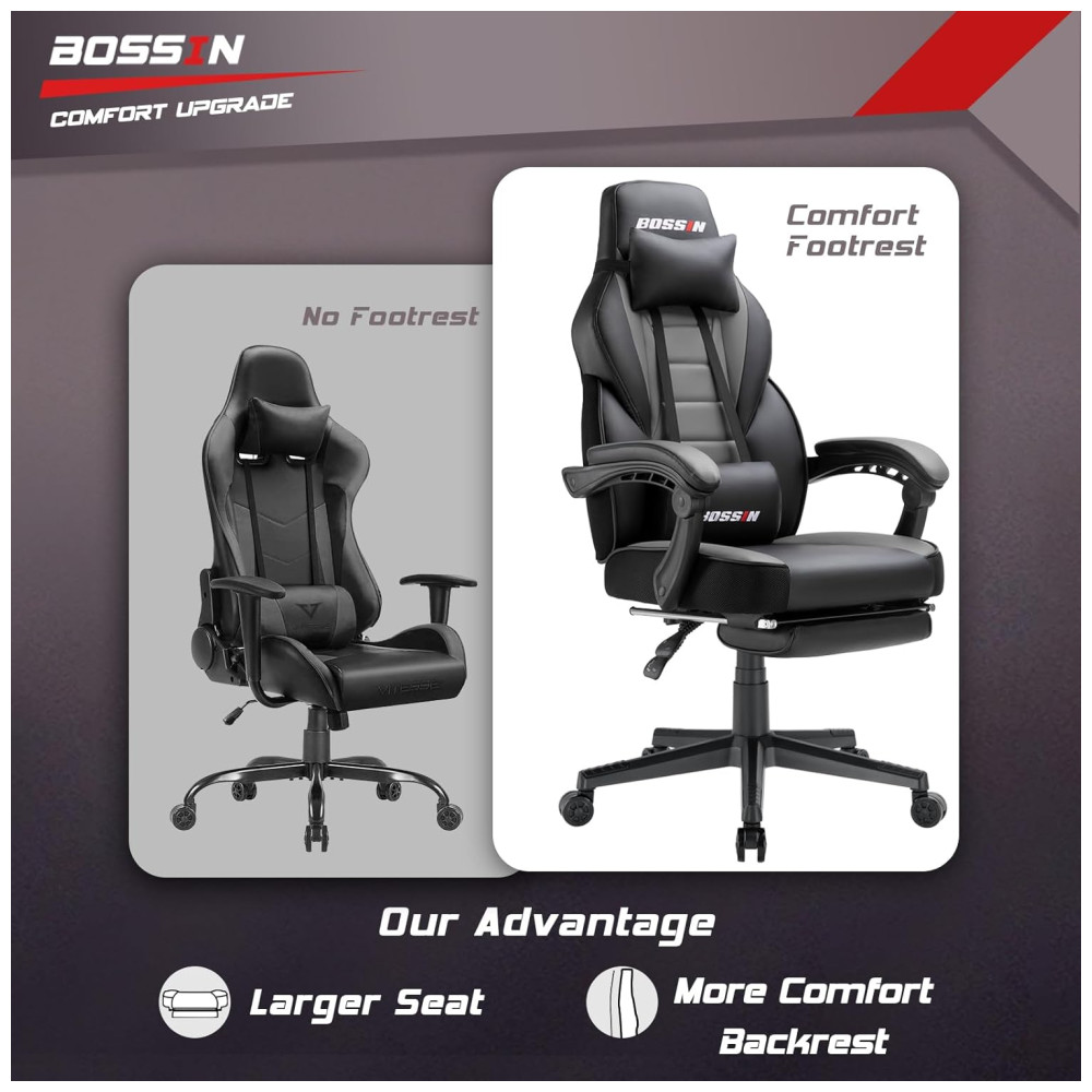 Design ergonômico para várias ocasiões Almofada maior, encosto alto e design de apoio para os pés extensível fornecem uma experiência confortável, perfeita para presente de natal, escritório, casa, ocasião de conferência e jogos intensos.
